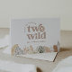 A safari themed 'thank you for being two wild with me' thank you card, featuring a watercolour lion face in the typography and neutral jungle leaves along the bottom. You can also add your own message inside, thanking guests for coming to celebrate with you.