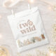 A safari themed 'thank you for being two wild with me' favour bag, featuring a watercolour lion face in the typography and neutral jungle leaves along the bottom. Perfect for thanking guests for coming to celebrate with you!
