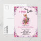 Two Wild Pink Safari Giraffe Floral Birthday Party Invitation Postcard