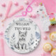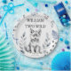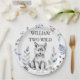 Two Wild wolf themed birthday party tableware personalised party plates, cute fluffy grey wolf cub some forest leaves for a wolf woodlands birthday party