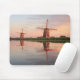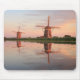 Photo mousepad with two windmills along a river with reflection in the still water in the sunset light on a summer evening in the Netherlands.