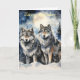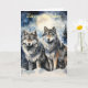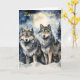 Two wolves in winter with snow, stars and moon. Suitable for a birthday for anyone
