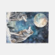 Two wolves in winter with snow, stars and moon