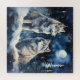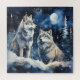 Two wolves in winter with snow, stars and moon