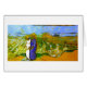 Two Women Crossing Fields, Vincent van Gogh Post-Impressionist landscape painting with figures of women.