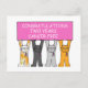 Cartoon kittens holding up a big pink sign that says 'Congratulations on 2 years cancer free'.