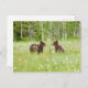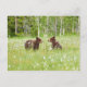 Two young brown bears in the middle of cottongrass flowers on a Finnish swamp in Eastern Finland on early summer evening postcard.