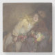 This design features a painting by the English painter, of the Victorian era, George Elgar Hicks (1824–1914). It shows two young girl sleeping next to each other as they rest in a train carriage on the journey home. They are dressed up in fine clothes and they have posies of roses and other flowers on their laps. Perhaps they have recently been to a family wedding or another grand event. The two girls are sleeping peacefully together: they appear relaxed and at ease. One of the girls has long blonde hair that is in curls, while the other girl has brown hair. The original artwork was painted in 1873.