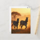 Two zebras trot across the African savanna at sunrise on this beautiful postcard. Perfect for anyone who loves nature, animals and the outdoors.
