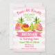 This colourful design features a group of fruit, pink banner and some faint pink strips. It's sure to set the mood for your daughter's tutti fruity 2nd birthday party. The template is very easy to edit.