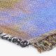 A quality printed throw has its advantages. This is a much finer weave throw than its loopier cousins, and though lighter, it is worth the investment for custom room accessorizing. The back is much prettier than the typical brown, and the fringe on the long sides very vivid, the selvage nicely done. Before photographing, I washed the throw in cold water, delicate, with a thicker woven throw the same size. On tumble dry low, this throw was dry in half the time as the other. This is a very practical quality if you use throws for furniture covers or to wrap up in frequently. The sleekness of the fabric makes it a great layer for accenting or protecting without the feeling of sitting on too much stuff. Perfect for napping or when you feel a light chill coming on. The color printing is beautiful and on this fabric, matched the design and color of my Photoshop image. This is an advantage for blending room fabrics and colors. The fringe on the short sides prints the colors from the design image and therefore varies from the side fringe. I streaked a white fractal line through the plaid pattern to give the illusion of weaving. This printed as crisp as an illusory thread, and put some white in the short side fringe, showing another advantage of print vs loomed- for artistic purposes, line lines, detail, and color integrity can be planned and preserved. My loomed throws have color limitations and more of a needlepoint texture. Print throws reproduce an exact image. The throw felt a little stiff straight out of the package, but this went away in the first delicate wash. Of course I searched the wash water for ink or bleeding and there was none.