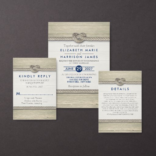 The design features a nautical ship's rope tied in a heart shaped knot on a rustic driftwood style background.