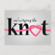 Make sure you friends and family SAVE THE DATE with a pretty pink heart love knot for the "O" in the text KNOT. Customisable TYING THE KNOT postcards for your special day.