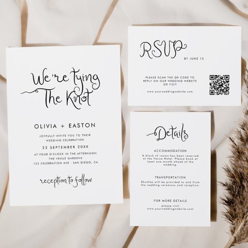 Tying the Knot Whimsical Handwritten Wedding Invitation