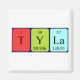 Tyla spelled out as T Y La (Tritium Yttrium Lanthanum) on a magnet for the scientist in you.
