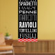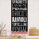 Add a designer touch to your Italian restaurant or kitchen wall, with this "Names of Pasta's" print. Fun white fonts on a black background with red and white chequerboard pattern on top and bottom. The list of types of pasta's, are best on the sample size shown. Makes a wonderful housewarming gift for someone special.