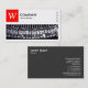 A business card template with a long rectangular image/photo area with a close-up photo of typewriter type leavers which alternatively can be replaced with your own image or photo and with a panel in the top left for a monogram or logo which includes a "W" as an example monogram which can also be changed. The design is balanced with four small rectangular text based symbols on the right created with the Semaphore symbol font. The white area is also a frame mask making it easy to position and resize a photo underneath. Company name and business type/quote on the front with name and contact details on the back in white on a contrasting dark grey background. Can be adapted to a variety of businesses and other uses.