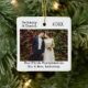Modern Trendy Typewriter Text Simple Minimalist, Our First Christmas as Mr. and Mrs. Wedding Photo Christmas Ceramic Ornament