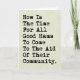 This is a simple card. But....All of us who took typing know this quote, "Now is the time for all good men to come to the aid of their party." Well, this has been revised for Ham Radio now! It reads: Now Is The Time For All Good Hams To Come To The Aid Of Their Community. And, it's done if the old typewriter font of the 1950's. Inside it wishes the recipient a Happy Birthday. But, you're free to change that to something else to suit your need.