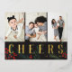 Typographic Botanicals 3 Photo Collage Cheers Foil Holiday Postcard