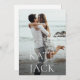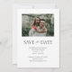 This save the date design features simple and modern typography set over your favourite full bleed photo. The back of the card displays another photo with more details, including space to include your wedding website.