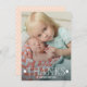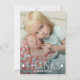 Lovely full bleed Photo Cards with a polka dot soft aqua and white pattern back. White Typography overlays the full bleed photograph with the word 'THANKS'. Add your own family photo quickly and easily just by clicking on the small thumbnail of the sample photograph to then upload your own. You'll see the changes made on screen immediately. The Fabulous Portrait Photography used in this Modern full bleed Photo Template Flat Card is thanks to the talented photographer, Carrie Keller Bitting of the Woven Nest Photography Pty Ltd - North Carolina, USA.