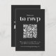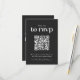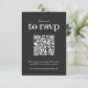 Modern minimal design with QR code and trendy typography on black background. The text can easily be personalised for a unique one of a kind design for your special day.