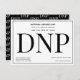 A DNP graduation party invitation in black and white. This invitation also has a pattern of the word DNP on the back.