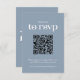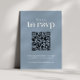 Modern minimal design with QR code and trendy typography on Dusty Blue background. The text can easily be personalised for a unique one of a kind design for your special day.
