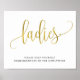 This is a beautiful wedding product featuring gold typography ladies bathroom sign