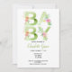 Typography Green Text Pink Flowers Baby Shower Invitation