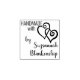 The simple design features san serif and calligraphy font with tow joined curly hearts for your "handmade with love" product identification.. Click the link to add your details or click customise to select a font style, size, and colour you like that works.