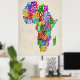 A typographic text map of Africa in an urban watercolor style. Each country is represented by its name, which is shaped to fit into the geographically correct area.