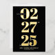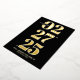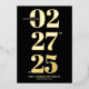 The front of the card features oversized numbers that command attention and evoke a sense of grandeur. The real gold foil brings a touch of opulence and sophistication, shimmering against the deep black background. Below the striking numbers, the names of the couple and the wedding location are elegantly displayed, adding a personal touch to the design.