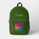 Elegant Modern Cute Trendy Simple Custom Template Upload Image Photo Picture Or Business Logo Add Typography Script Name Or Text Forest Green Solid Colour Accessories / Bags & Wallets / Backpack.