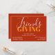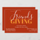 A Friendsgiving Thanksgiving invitation with stylised typography in white and orange and a darker orange background. Invite your favourite people to come give thanks and celebrate.