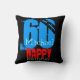 Typographic design with large blue number + name in blue + humourous lettering for Happy in red + birthday in yellow. Design on square pillow with text for 60th birthday to customise. You can easily change text(font, colour, size and position) by clicking the customise button. Matching greeting card. Perfect for him.
