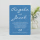 The text on this pool or peacock blue and white simple typography floral wedding invitation is fully customisable. To change it use the personalise option. For more extensive changes to the invitation including changes to the font, font colour, font size, or text placement, use the customise option. This is a simple and modern text dominant invitation for a spring or summer wedding. Although currently customised for a wedding, this invitation would also work well for a variety of other special occasions as well. You decide. All you need to do is change the text. This invitation is currently set to print on plain white paper, but also looks very nice on many of the other paper types.