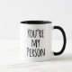 A sweet and trendy friendship coffee mug that says You're My Person in a black and white typography design. A useful and thoughtful gift for your best friend or significant other.