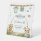 Perfectly suited for a forest-themed or country-style event, this pedestal sign embodies rustic charm and is sure to make your guests feel over the moon. The elegant typography and script font enhance the sign's overall appeal, making it an eye-catching piece of décor that complements any baby shower setting.