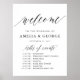 This is a beautiful portrait poster welcome order of events wedding sign featuring script text.