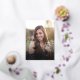 Photo on front and back... Casual graduation invitation announcement with mortarboard graduation cap icon, perfect for the high school or college grad. Modern minimalist typography, casual elegant script "Graduate" writing. Capture those special moments of growth and smiles of joy and youthfulness for all time. Upload a full portrait-mode cover photo of the graduate on front, and a landscape orientation photo als well as pertinent details of the graduation party on back. Automatically shades the perfect areas of the pic.