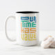 thetasse feartures the phrase OUR TIME HAS VALUE in astylized blockey font