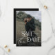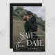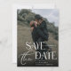 Modern typography wedding save the date card featuring single photo, date , names and typography script in trendy bold lettering.