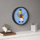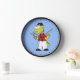 The size of the clock is dramatic and the abstract alcohol ink design is soothing and intricate at the same time. I chose the black frame that adds pop to the blue and gold design. The gold printing would be better in a slightly darker or larger font. I love it and I’m looking for just the right place in ny new apartment. I would recommend this clock for a personal gift or a present. I feel that the quality is excellent for the money! I’m a bit of a clock nut so I’m pretty particular about my purchases. The clock is larger in diameter than many if the clocks I have, so it stands out very well. I think a slightly darker printing color and a moderately larger size would best suit a professional decor or add more impact in a work place item.