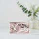 A brown and white, cartoon tyrannosaurus, with an oddly adorable, toothy smile! This business card features a watercolor dinosaur fossil background. Like this t-rex?