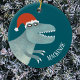 Tyrannosaurus Rex Christmas Santa Hat Personalised Ceramic Tree Decoration