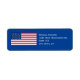 Patriotic. USA American flag is the only design. Just personalise it by adding your information or wording. If the area of the complete name and address or wording is short, text size can be enlarged if it fits the space allowed, or reduce size if needed. Shown on a blue background or customise to change colour to white