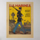 A U.S. Marines recruitment poster from World War I showing a marine with a rifle patrolling docks.