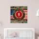 Introducing project “Military Insignia 3D”, featuring top quality military heraldry designs. Here you will find wrapped canvas and framed fine art prints decorated with rank insignia of a U.S. Marine First Lieutenant (USMC 1stLt). In the United States Marine Corps, a first lieutenant is a junior commissioned officer. It is just above the rank of second lieutenant and just below the rank of captain. It is equivalent to the rank of lieutenant (junior grade) in the other uniformed services. A second lieutenant (grade O-1) is usually promoted to first lieutenant (grade O-2) after 24 months in the Marine Corps. The difference between the two ranks is slight, primarily being experience and higher pay. It is not uncommon to see officers moved to positions requiring more experience after promotion to first lieutenant. For example, in the Marine Corps these positions can include leading a speciality platoon, or assignment as the executive officer for a company-sized unit (70-250 marines).